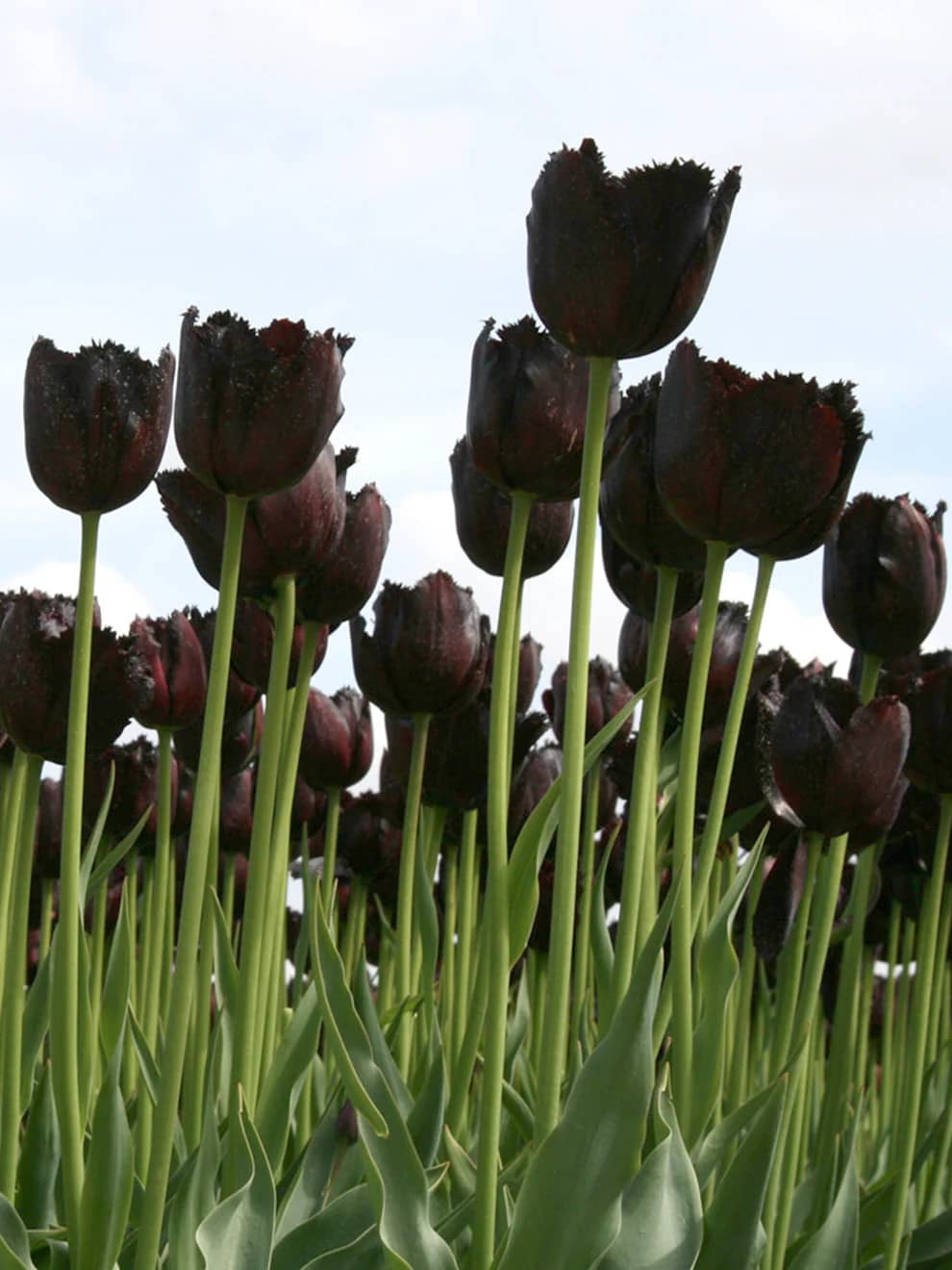 Глибокий, майже чорний відтінок пелюсток із фіолетовим блиском виглядає розкішно як у саду, так і в букетах. Це справжня “чорна перлина” серед тюльпанів.