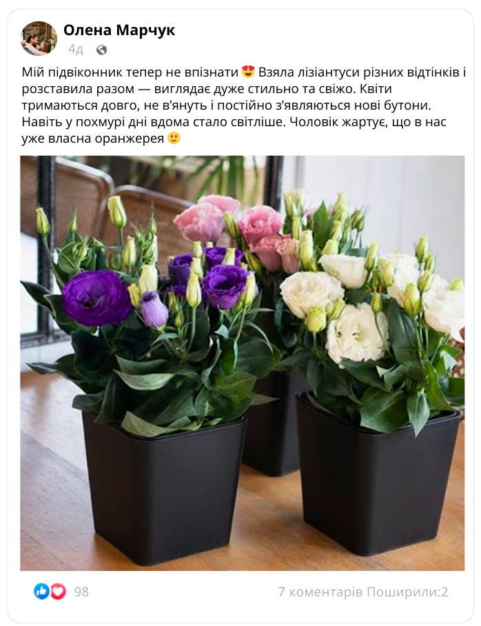 Що говорять ті, хто вже обрав лізіантус «Адалін»