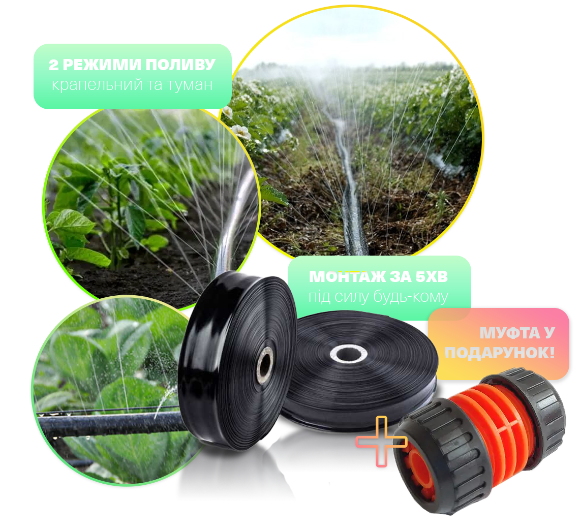 Радіус поливу 6 метрів навколо кожної точки подачі води